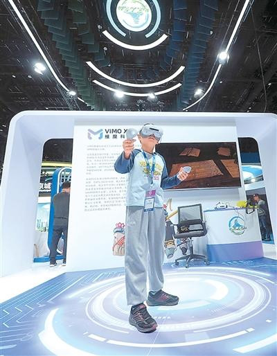 HICOOL2025全球创业者峰会近日在北京开幕。图为10月18日,外国观众在峰会现场体验VR游戏。杜建坡摄(人民视觉)