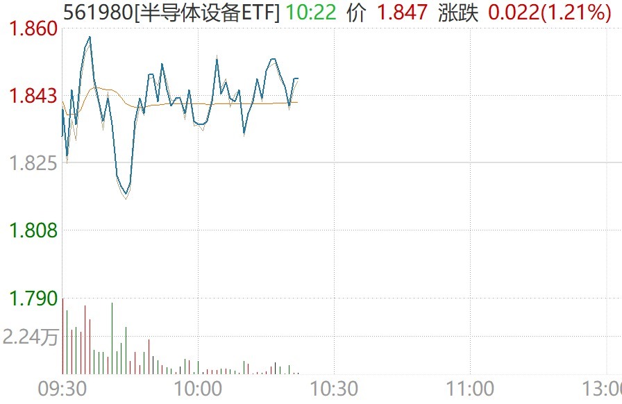 早盘半导体板块立马就有反应了,开盘不到半小时,多只芯片股纷纷拉涨。半导体设备ETF(561980)近期保持向上走势、早盘一度涨超1.6%,重仓股华海清科、南大光电涨超2%,中微公司涨1.84%,中芯国际涨超3%,拓荆科技、长川科技、中科飞测等强势跟涨。