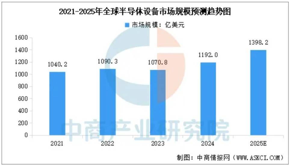 有很多朋友不明白半导体设备和材料究竟是什么,其实这两个环节就像是整个芯片产业的“基石”和“血液”——不管下游应用从哪方面爆量,它们都能跟着受益。据中商产业研究院预测,到2025年,全球半导体设备市场规模有望达到1398.2亿美元。